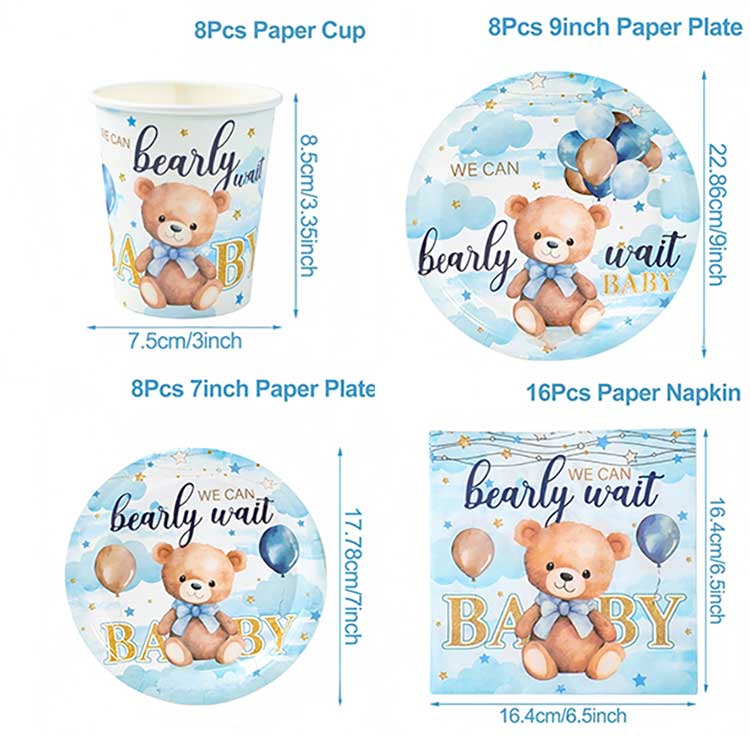 ကလေးမွေးနေ့အတွက် သင့်လျော်သော တစ်ခါသုံးပန်းကန်ပြားအစုံ- ကလေး၏ပထမဆုံးမွေးနေ့ပါတီ၊ ရက် 100 အထိမ်းအမှတ်ပွဲ၊ ကလေးရေချိုးခန်းပါတီ၊ ကလေးပုံစံမွေးနေ့ပါတီနှင့် မွေးကင်းစကလေးငယ်များနှင့် ကလေးငယ်များနှင့်သက်ဆိုင်သည့် အခြားအခမ်းအနားများအတွက် အလွန်လက်တွေ့ကျသည်။