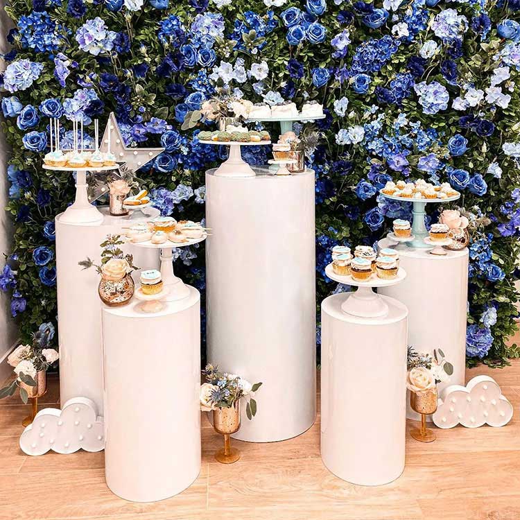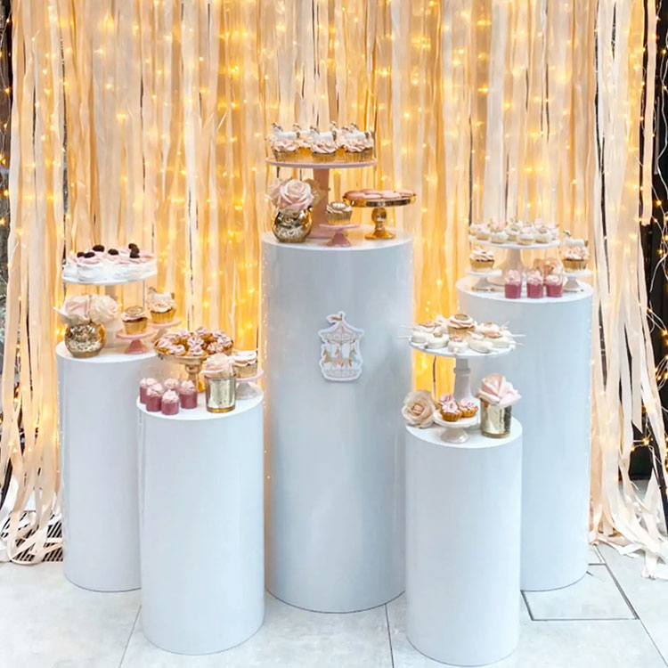 Cylindrical အချိုပွဲစားပွဲကို ပါတီများ၊ မင်္ဂလာဆောင်များ၊ မွေးနေ့ပွဲများနှင့် လုပ်ငန်းများတွင် အသုံးပြုနိုင်ပြီး အနုပညာလက်ရာများ၊ ပန်းများ၊ လက်ဝတ်ရတနာများနှင့် အခြားအရာများကို ပြသရန် ၎င်းတို့ကို အသုံးပြုနိုင်သည်။