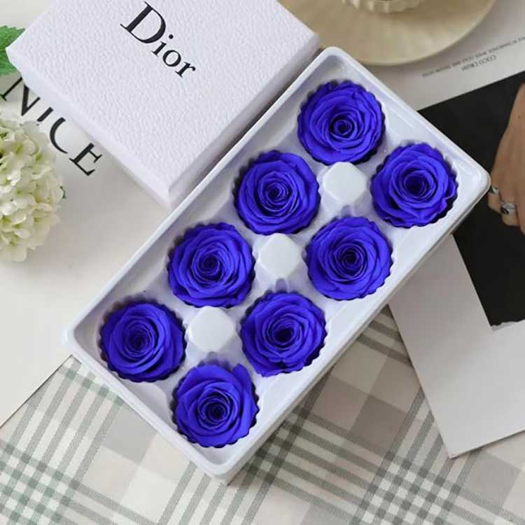 နှင်းဆီများကို A၊ B နှင့် C အဆင့်သုံးဆင့်ခွဲခြားထားသည်။ အဆင့် A နှင်းဆီများသည် ပိုကြီးပြီး ပိုပြည့်သည်။ ကျွန်ုပ်တို့၏ထာဝရပန်း ၈ပွင့် နှင်းဆီလက်ဆောင်သေတ္တာကို အဆင့် A နှင်းဆီများဖြင့် ပြုလုပ်ထားသည်။ လက်ဆောင်သေတ္တာ၏အတိုင်းအတာမှာ 24cm*13cm*8cm ဖြစ်သည်။ တစ်ဗူးလျှင် 150g ခန့်အလေးချိန်ရှိသည်။ ထိန်းသိမ်းထားသောပန်းများ၏ သက်တမ်း- ပုံမှန်သိုလှောင်မှုအခြေအနေအောက်တွင် 3-5 နှစ်၊ သင်၏ရောင်းအားအတွက် ပိုအကျိုးရှိသည်။