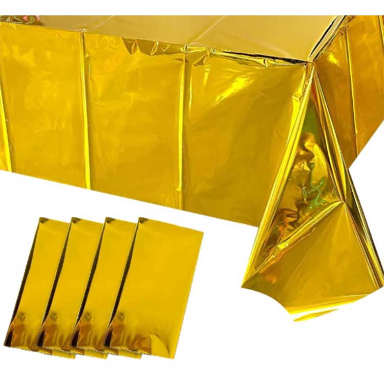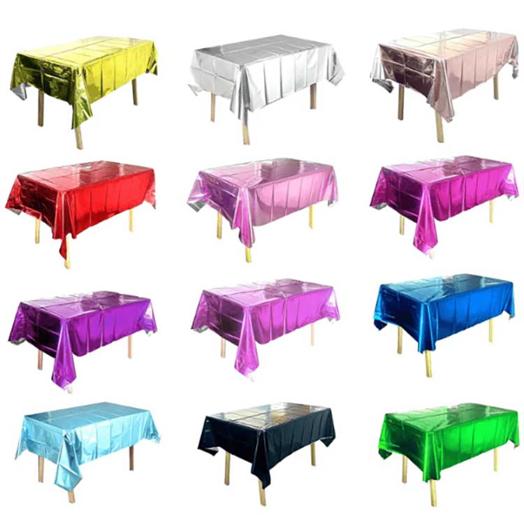 Foil Table cover ကို အမျိုးမျိုးသော အခမ်းအနားများတွင် စားပွဲတင်ရန်အတွက် အသုံးပြုသည်။ ၎င်းသည် စားပွဲမျက်နှာပြင်ကို အစွန်းအထင်းများ၊ ခြစ်ရာများ သို့မဟုတ် ပျက်စီးခြင်းမှ တားဆီးနိုင်ပြီး အရောင်များနှင့် ပုံစံများသည် အလှဆင်အကျိုးသက်ရောက်မှုများကိုလည်း ယူဆောင်လာနိုင်သည်။ ၎င်းကို အထူး PET အလူမီနီယမ်ဖြင့် ဖုံးအုပ်ထားသော ဖလင်ဖြင့် ပြုလုပ်ထားသည်။ ထုတ်လုပ်မှုလုပ်ငန်းစဉ်အတွင်း၊ ကျွန်ုပ်တို့သည် စားပွဲအဖုံး၏ ခိုင်ခံ့မှု၊ တင်းမာမှုနှင့် အိုမင်းရင့်ရော်မှုကို ဆန့်ကျင်ကြောင်း သေချာစေရန် ဖုန်စုပ်စက်ကို အသုံးပြုထားသည်။ ထို့အပြင်၊ ၎င်း၏သိပ်သည်းဆမြင့်သော မော်လီကျူးများသည် ဟင်းချို သို့မဟုတ် ဆီစွန်းထင်းခြင်းများကို ထိထိရောက်ရောက် တားဆီးနိုင်ပြီး ရေစိုခံသည့် လုပ်ဆောင်ချက်လည်း ပါရှိသည်။