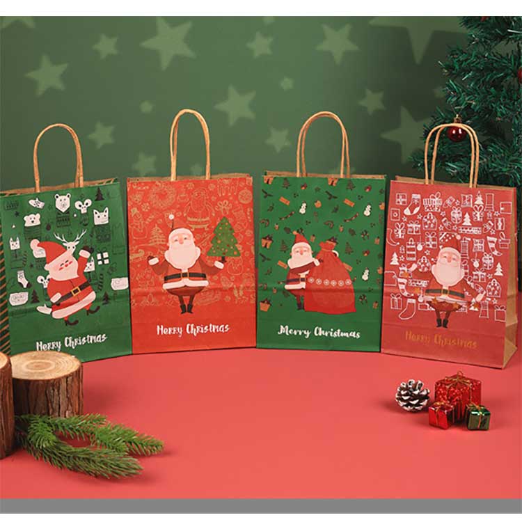 လက်ဆောင်အိတ်များကို 120g kraft paper နှင့် တင်သွင်းထားသော အဆင့်မြင့် kraft သားရေတို့ကို အသုံးပြု၍ သဘာဝပတ်ဝန်းကျင်နှင့် သဟဇာတဖြစ်သော ကတ်ထူပြားဖြင့် ပြုလုပ်ထားသည်။ အရောင်များသည် နူးညံ့ပြီး တက်ကြွပြီး အရောင်မှိန်ခြင်းမရှိသည့်အပြင် ပစ္စည်းသည် အနံ့ကင်းကာ အလွန်ခိုင်ခံ့ကာ အလေးချိန် 6-9 ကီလိုဂရမ်အထိ ခံနိုင်သည်။ ၎င်းတို့ကို ရေစိမ်ခံရန်အတွက် ကြမ်းခင်းဖြင့် ပြုလုပ်ထားနိုင်ပြီး အတွင်းမှ ထုတ်ကုန်များကို ထိထိရောက်ရောက် ကာကွယ်ပေးပါသည်။ ပွဲတော်အခါသမယများအတွက် ပုံနှိပ်ခြင်းမပြုဘဲ မိုနိုခရုမ် သို့မဟုတ် ရောင်စုံပုံနှိပ်ထားသော ဒီဇိုင်းများကဲ့သို့သော ဒီဇိုင်းအမျိုးမျိုးနှင့် အရောင်များကို ရရှိနိုင်ပါသည်။ မတူညီသော ထုတ်ကုန်လိုအပ်ချက်များကို ဖြည့်ဆည်းရန် မတူညီသောအရွယ်အစားများကို ရရှိနိုင်ပါသည်။