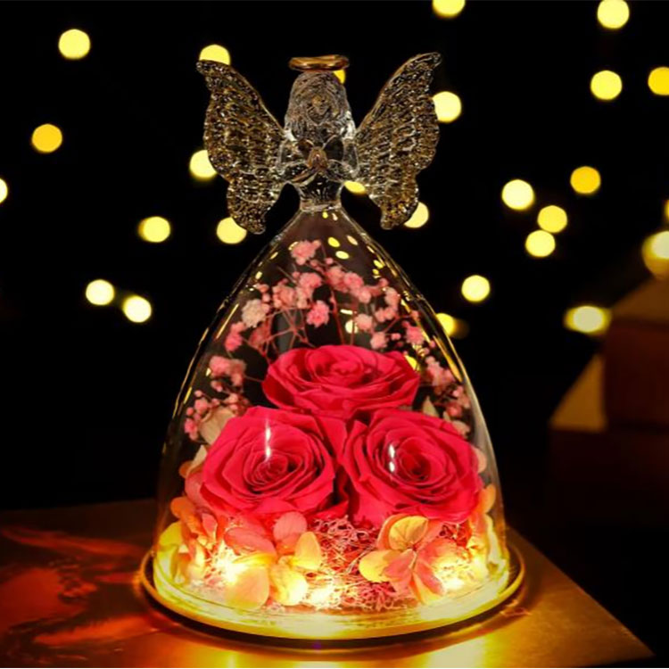 ကျွန်ုပ်တို့၏ဖန်ခွက်နတ်သမီးသည် ထိန်းသိမ်းထားသော ပန်းလက်ဆောင်ကို OEM & ODM ပံ့ပိုးပေးပါသည်။