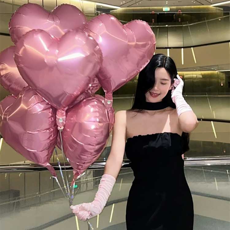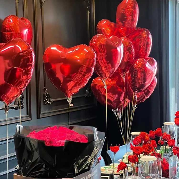 နှလုံးပုံသဏ္ဍာန် အလူမီနီယမ်သတ္တုပြားဘောလုံးများကို ထူထဲသော နိုင်လွန်ပစ္စည်းဖြင့် ပြုလုပ်ထားပြီး၊ ဤပူဖောင်းများသည် သဘာဝပတ်ဝန်းကျင်နှင့်လိုက်ဖက်သော မှင်များဖြင့် ရိုက်နှိပ်ထားသော ကွက်ကွက်ကွင်းကွင်း ဒီဇိုင်းများကို ဂုဏ်ယူပါသည်။ တစ်ထုပ်လျှင် 50 balloons ရှိပါသည်။