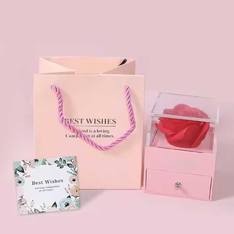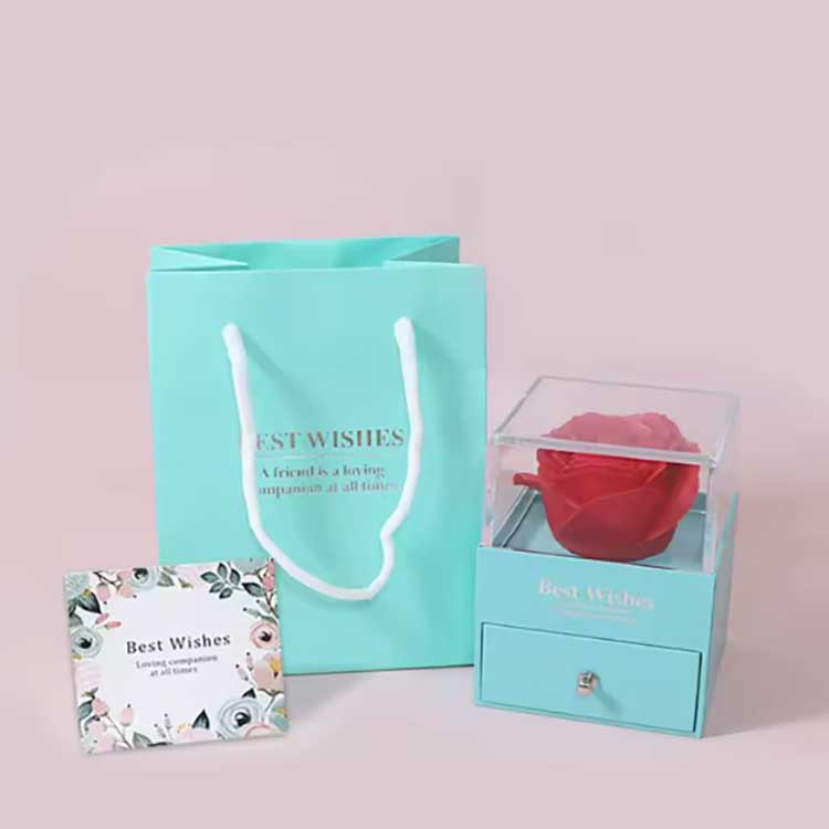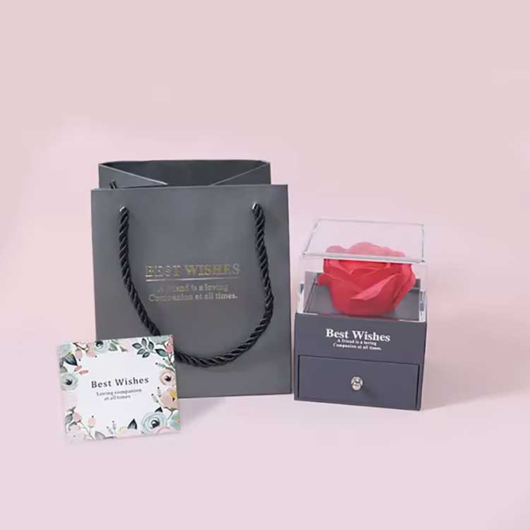 Immortal Flower Gift Box သည် လူကြိုက်များသော ထုတ်ကုန်တစ်ခုဖြစ်သည်။ ၎င်း၏ဆက်စပ်ပစ္စည်းများကို အရည်အသွေးမြင့်ပစ္စည်းများဖြင့် ပြုလုပ်ထားသည်။ လက်ဆောင်သေတ္တာတစ်ခုစီတွင် တောက်ပသောနှင်းဆီနှင့် လက်ရာမြောက်သော လက်ဝတ်ရတနာများပါရှိသည်။ ၎င်းတို့ကို လက်ခံရရှိသည့်အခါတွင် ၎င်းတို့ကို ကိုယ်တိုင်တပ်ဆင်စရာမလိုဘဲ တိုက်ရိုက်အသုံးပြုနိုင်ပါသည်။ သူတို့သည် သင့်ခံစားချက်များကို သင့်သူငယ်ချင်းများ သို့မဟုတ် ဆွေမျိုးများကို အပြည့်အဝဖော်ပြနိုင်ပြီး သင့်အခမ်းအနားအား ရိုမန်တစ်ဆန်မှုနှင့် အံ့အားသင့်မှုအပြည့်ဖြစ်စေသည်။
