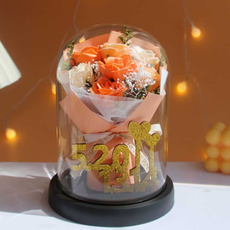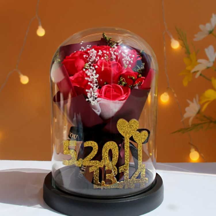 ဤဖန်ခွက်နှင်းဆီပန်းစည်းသည် ပန်းများသွေ့ခြောက်ခြင်းမှကာကွယ်ရန် ဒီဇိုင်းထုတ်ထားပြီး အတွင်းမှနှင်းဆီပန်းများသည် ကြွေကျမည်မဟုတ်ပါ။ ပန်းစည်းသည် အလွန်သက်ရှိထင်ရှားရှိပြီး ပန်းအစစ်များနှင့် ကွဲလွဲနိုင်ကာ ပန်းစည်း၏အလှကို ကောင်းစွာတင်ပြနိုင်သည်။ အတွင်းတွင်၊ ရွှေရောင်နံပါတ် 520+1314 သည် 520 နှင့် 1314 နံပါတ်များကို ကိုယ်စားပြုပြီး ချစ်ခြင်းမေတ္တာကို ကိုယ်စားပြုပြီး ဤလက်ဆောင်၏ ဆင်ခြင်ဉာဏ်ကို မီးမောင်းထိုးပြပါသည်။